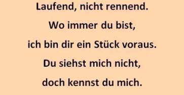 „Laufend, nicht rennend. Wo immer du bist, ich bin dir ein Stück voraus.“ Klingt wie ein Gedicht – ist aber…