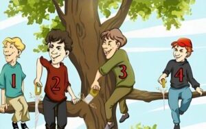Stellen Sie sich eine einfache, aber faszinierende Szene vor: Vier Kinder sitzen auf den Ästen eines Baumes. Einige lehnen sich…