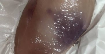 Sie haben Ihre Hähnchenbrustpackung geöffnet, bereit zum Kochen, und da … Überraschung: ein violetter Fleck auf dem Fleisch. Nicht sehr…